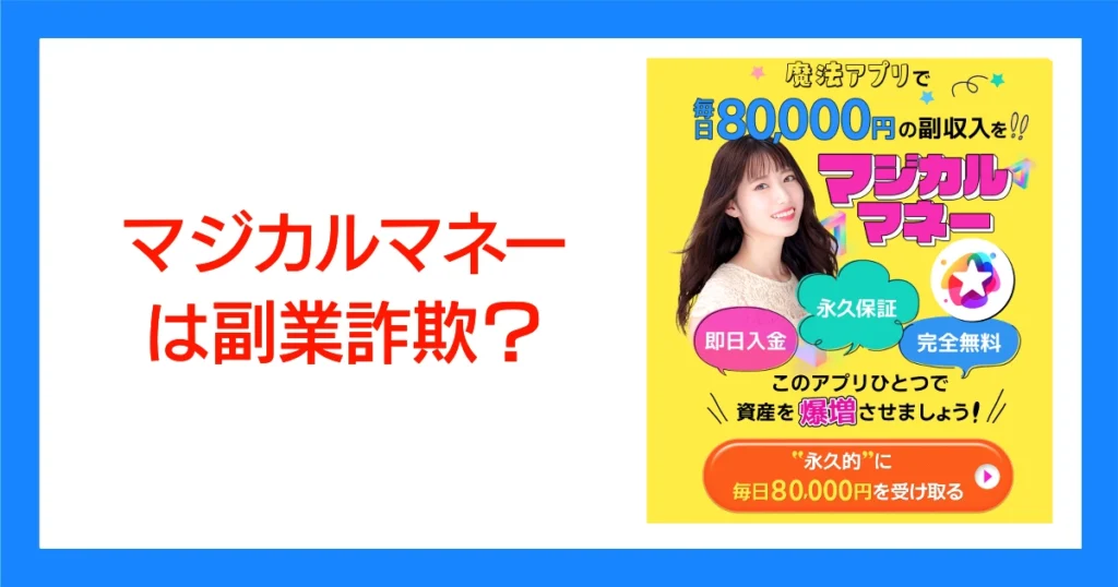 このブログでは、ネット上の副業を徹底的に調査検証し、稼げる情報・正しい情報をみなさんにお届けします 今回は、マジカルマネーという副業について調査してみました。 検証内容 マジカルマネーは、広告のように毎日80,000円稼げる副業ではありませんでし...