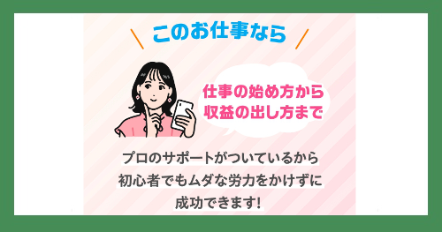 仕事の始め方から収益の出し方までしっかりサポートしてくれるとあります。