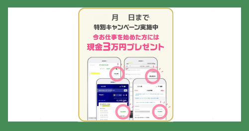 また、今この仕事を始めると、現金3万円のプレゼントもあるようです。