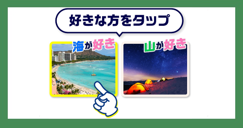 以下のように、海が好きか、山が好きか、このような感じでどちらか好きな方を直感で選んでいくもののようです。